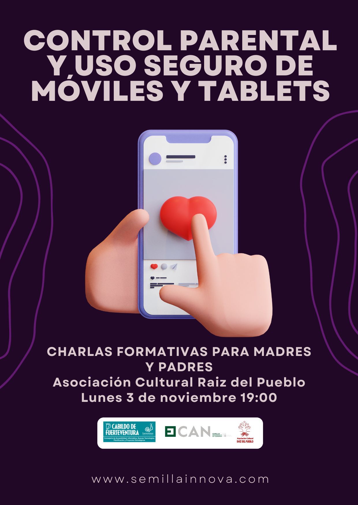Como parte de este proyecto, el lunes 3 de noviembre a las 19:00 horas, en la sede de la Asociación Cultural Raíz del Pueblo, se celebrará una nueva charla formativa abierta a todas las madres y padres interesados en participar y ampliar sus conocimientos sobre el control parental y el uso seguro de móviles y tablets.