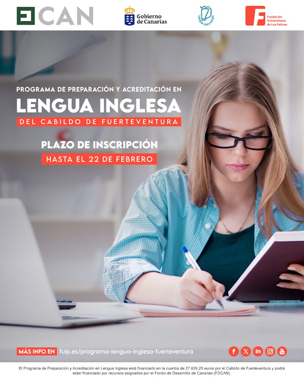 Las personas interesadas tienen hasta el 22 de febrero de 2026 para inscribirse. Toda la información puede consultarse en https://www.fulp.es/programa-lengua-inglesa-fuerteventura