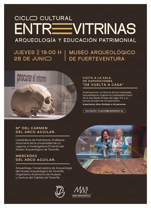 El Ciclo ‘Entre Vitrinas’ del Museo Arqueológico de Fuerteventura llega a su fin el próximo 26 de junio, a las 19.00 horas, con una visita guiada a la exposición ‘De Vuelta a Casa. El legado del pueblo majo’, en la que se analiza la historia de los materiales arqueológicos majoreros trasladados fuera de la Isla desde finales del siglo XIX y su actual proceso de recuperación.
