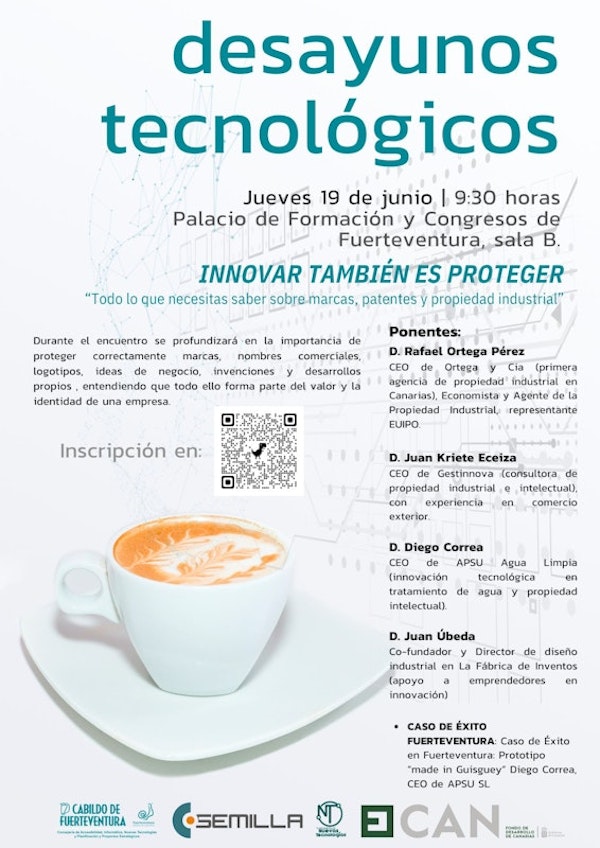 Tendrá lugar en el Palacio de Congresos de Fuerteventura, bajo el título ‘Innovar también es proteger: Todo lo que necesitas saber sobre marcas, patentes y propiedad industrial’