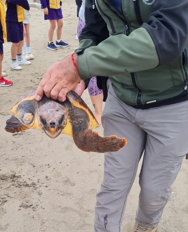 Más de 150 escolares participan en la suelta de tres tortugas marinas recuperadas en las costas de Fuerteventura