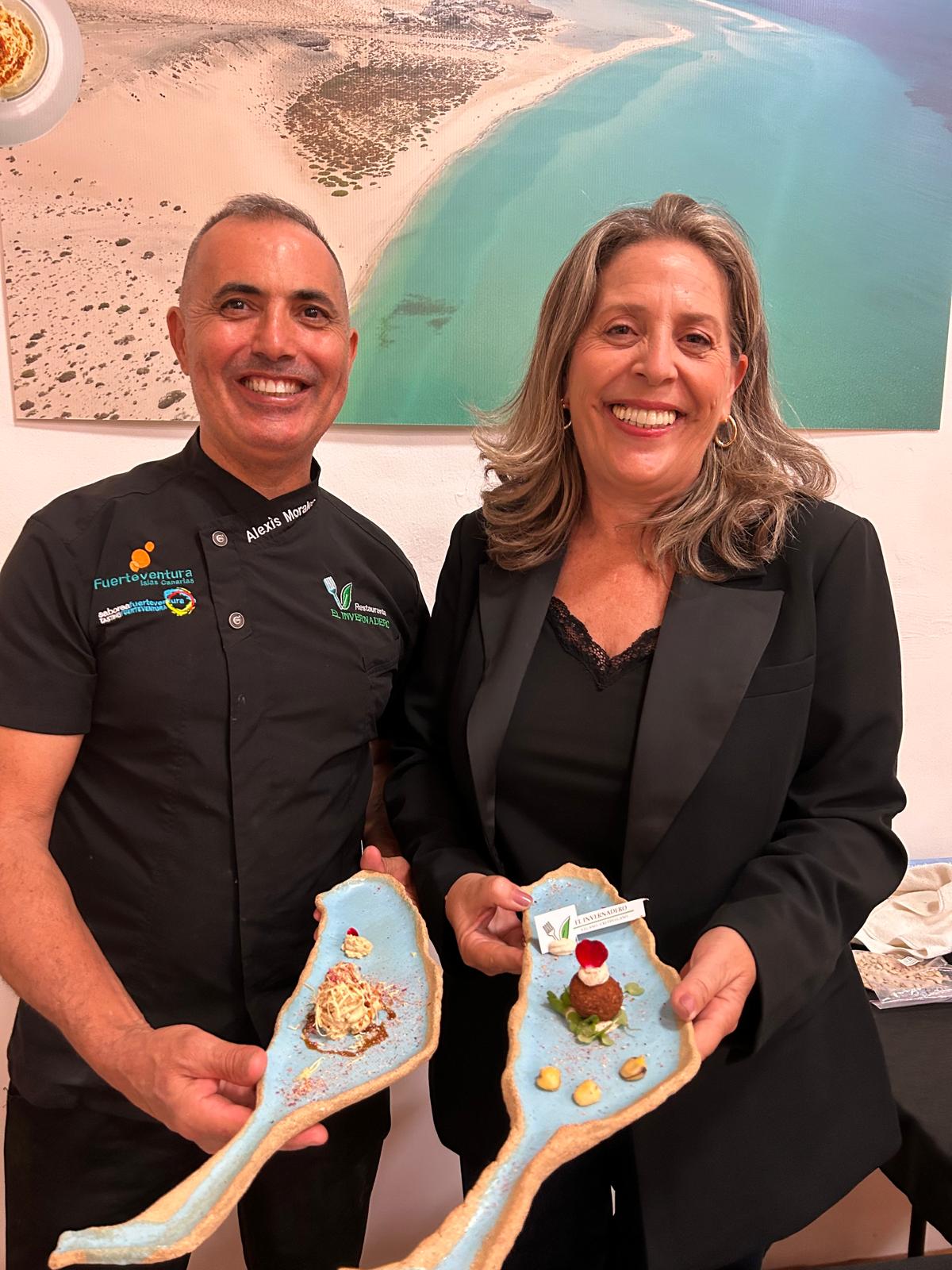 Una vez más la gastronomía de Fuerteventura despertó el interés entre un público especializado que demanda conocer la importante apuesta del destino por generar valor añadido a través de los sentidos y las experiencias, señala la Consejera de Turismo del Cabildo de Fuerteventura, Marlene Figueroa, que participó en la presentación, una puesta en escena en la que el chef Alexis Morales introdujo a los presentes en el mundo de la cocina vegana con su original “Chichafel” (falafel de chícharos), una legumbre autóctona canaria que fusiona el garbanzo y el guisante y que este conocido cocinero combina con plátano.
