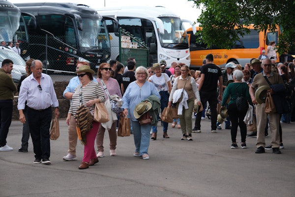 700 mayores de todos los municipios visitaron en la tarde de hoy, 4 de abril, la Feria Agrícola, Ganadera y Pesquera (FEAGA) de Fuerteventura. Participaron personas de todos los centros de mayores de la Isla, así como de la Residencia y Centro de Día de Puerto del Rosario. Fueron recibidos por la presidenta insular, Lola García, el alcalde de Antigua, Matías Peña, y el consejero de Acción Social, Víctor Alonso, así como representantes de todos los ayuntamientos.