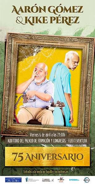 Aarón Gómez y Kike Pérez actuarán este viernes, 6 de abril, a las 21.00 horas, en el Palacio de Formación y Congresos de Fuerteventura. Después de haber triunfado el pasado año con espectáculos como ‘Contado Pierde’ o ‘Los Premios Machango’, los cómicos regresan a la Isla para ofrecer el show ’75 Aniversario’, una nueva andadura que refleja la veteranía de estos dos expertos del humor.