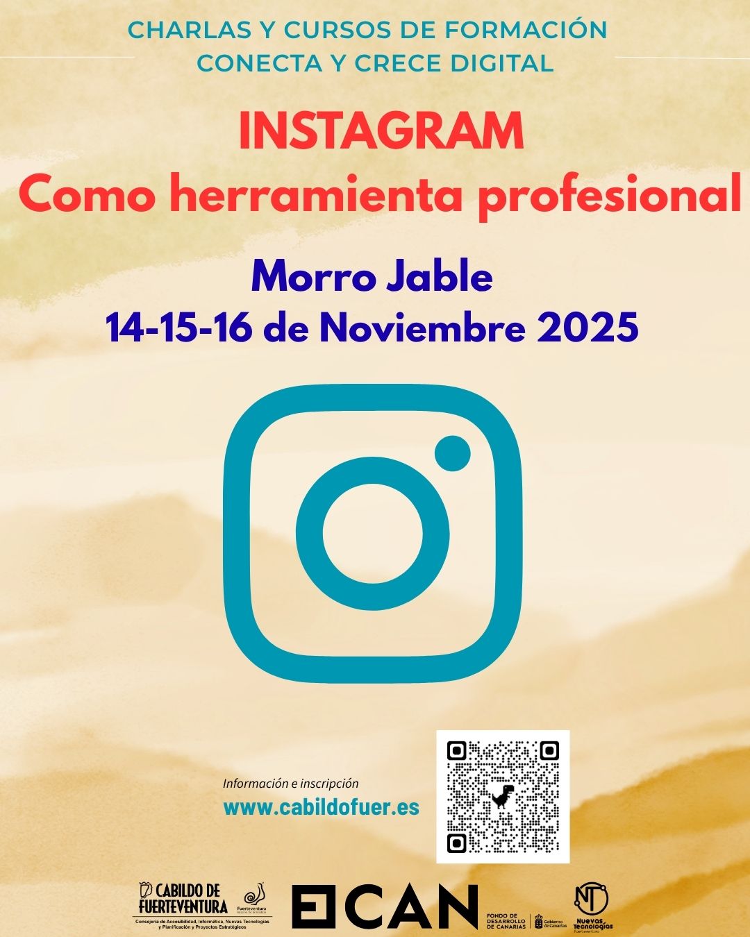 El Cabildo de Fuerteventura, a través de la Consejería de Informática y Nuevas Tecnologías, continúa su ciclo formativo financiado por los fondos FDCAN con una nueva acción en Morro Jable dedicada al uso de Instagram como herramienta profesional.