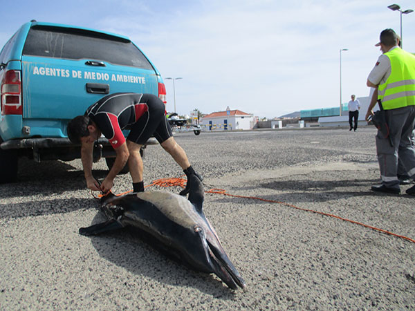 Agentes de Medio Ambiente del Cabildo de Fuerteventura, en colaboración con Salvamento Marítimo de Las Palmas y Salvamento de Playas de La Oliva, localizaron hace unos días los cadáveres de dos delfines comunes (Delphinus delphis), en zonas de las costas de La Oliva y Tuineje.