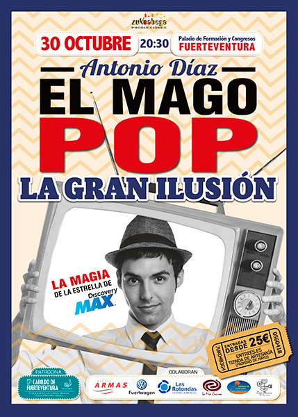 Antonio Díaz, el Mago Pop de Discovery Max, llevará su espectáculo ‘La Gran Ilusión’ al Palacio de Formación y Congresos de Fuerteventura. El evento tendrá lugar este domingo, 30 de octubre, a las 20.30 horas, dentro de las actividades de la Agenda de Cultura del Cabildo, que coordina Juan Jiménez.