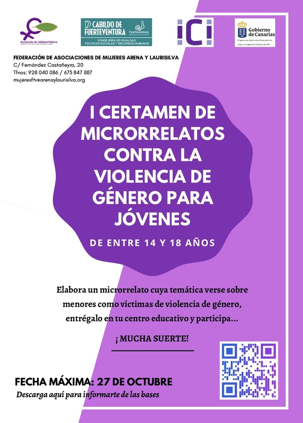 El primer Certamen de Microrrelatos contra la Violencia de Género para Jóvenes forma parte de las actividades organizadas por la Consejería de Políticas Sociales y la Federación de Asociaciones de Mujeres Arena y Laurisilva para conmemorar el Día Internacional de la Eliminación de la Violencia de Género, que se celebra el 25 de noviembre. Esta iniciativa busca concienciar y sensibilizar a la población joven de los efectos negativos de la violencia hacia mujeres y niñas, así como dotarles de herramientas útiles para identificar indicadores y señales de alarma y adquirir pautas que les permitan relacionarse de forma más saludable e igualitaria.