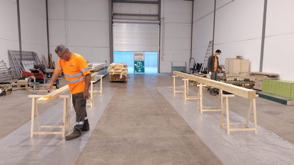Las cuadrillas del Cabildo preparan y protegen las maderas para instalar a continuación las pérgolas de Tesejerague y Tiscamanita