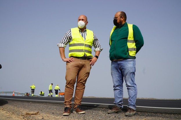 El presidente del Cabildo y responsable del Servicio de Carreteras, Sergio Lloret López, visitó ayer el estado de las obras que se están realizando en la carretera FV-10, en el tramo comprendido entre Lajares y El Roque, y que previsiblemente estarán finalizadas en la primera quincena de este mes de febrero una vez que concluya la instalación del sistema de contención y la demolición del desvío provisional que se realizó para poder ejecutar la obra de drenaje del barranco del Jable.