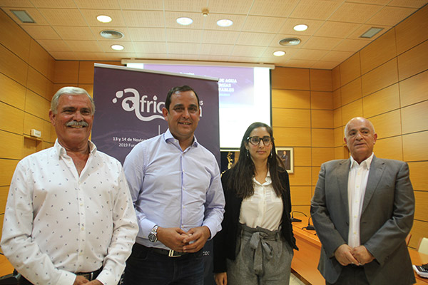 El Presidente del Cabildo de Fuerteventura, Blas Acosta, la Directora General de Relaciones Económicas del Gobierno de Canarias con África, Nasara Cabrera, junto al Presidente de la Cámara de Comercio de Fuerteventura, Antonio Rodríguez, y el Presidente de la Comisión de Comercio Exterior de la Cámara de Comercio majorera, Juan Jesús Rodríguez, han presentado en el Salón de Plenos de la Corporación Insular el VI Foro de Agua y Energías Renovables, ‘Africagua 2019’, un evento empresarial de carácter internacional centrado en promover iniciativas relacionadas con el Agua y las Energías Renovables en África Occidental, que se celebrará los próximos días 13 y 14 de noviembre en el Palacio de Formación y Congresos de Fuerteventura.