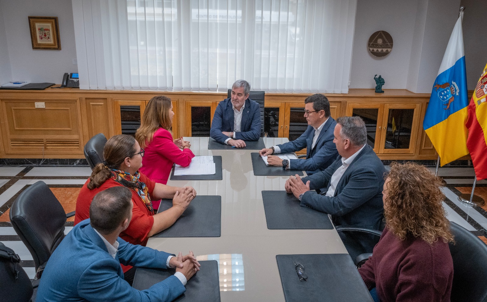 El consejero de Obras Públicas, Vivienda y Movilidad del Gobierno de Canarias, Pablo Rodríguez, y el presidente de Canarias, Fernando Clavijo, han mantenido un encuentro con la presidenta del Cabildo, Lola García, la alcaldesa de Tuineje, Candelaria Umpiérrez, y el alcalde de Pájara, Alejandro Jorge, junto a sus concejales Alexis Alonso y Noelia García, en el que han acordado iniciar esta ronda de encuentros con vecinos y vecinas para dar a conocer las acciones que se llevarán a cabo próximamente en torno al proyecto.
