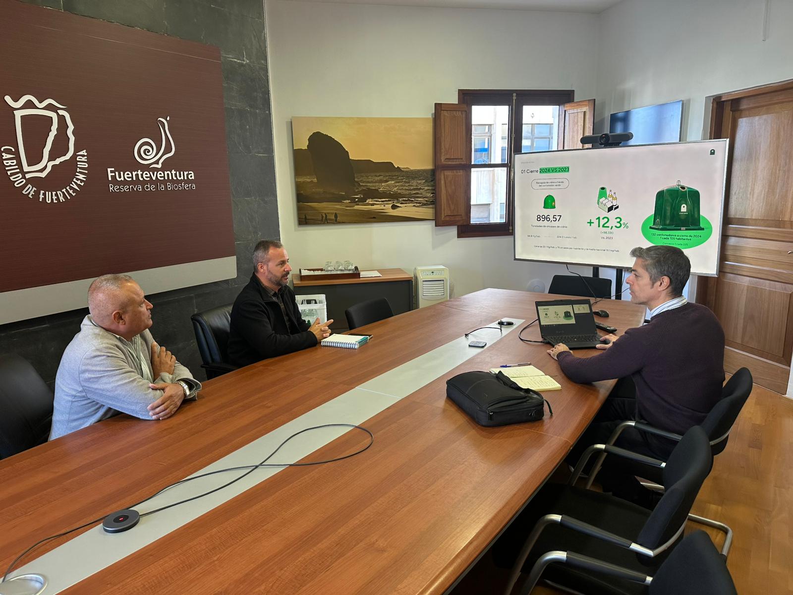 El concejal de Obras y Servicios de Antigua, Juan Cabrera, ha puesto en valor una colaboración que vendrá a reforzar el reciclaje en el municipio. Durante la reunión, se fijó, además, la hoja de ruta para la renovación e incremento de contenedores de vidrio en el municipio.