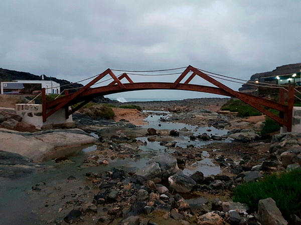 El puente peatonal del barranco de Los Molinos se ha construido con materiales reciclados de otras actuaciones y su ejecución ha estado en manos de profesionales de la carpintería que trabajan en el Cabildo de Fuerteventura.