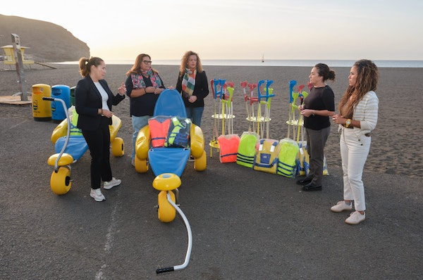 La consejera de Accesibilidad, Carmen Alonso, explica que, gracias a este convenio, se ha proporcionado sillas anfibias, un kit de muletas de arena y chalecos salvavidas en todas las tallas. Por su parte, la concejala de Accesibilidad, María del Carmen Rodríguez, indica que el material está a disposición de todas aquellas personas que las quieran solicitar al Ayuntamiento de Tuineje, contribuyendo a la accesibilidad universal e inclusión de todas las personas. El material fue entregado por la concejala de Accesibilidad, María del Carmen Rodríguez, a la concejala de Playas, Noelia García.