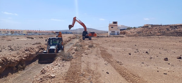 Continúan las actuaciones preventivas del Cabildo en cauces y canales de desagüe para evitar desbordamientos en caso de fuertes lluvias. En este caso, el Cabildo de Fuerteventura colabora con el Ayuntamiento de Puerto del Rosario para limpiar y dejar con plena operatividad los cauces públicos que protegen la localidad de El Matorral.