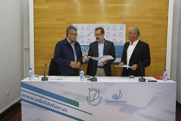 El Cabildo de Fuerteventura favorecerá la inserción laboral de titulados universitarios a través de un convenio suscrito hoy, viernes, día 14 de octubre, entre el presidente de la Corporación insular, Marcial Morales, y el presidente de la Cámara de Comercio, Industria y Navegación de Fuerteventura, Antonio Rodríguez Marichal, para la puesta en marcha del proyecto ‘Quédate’. Al acto también asistió el consejero de Empleo, Rafael Páez.