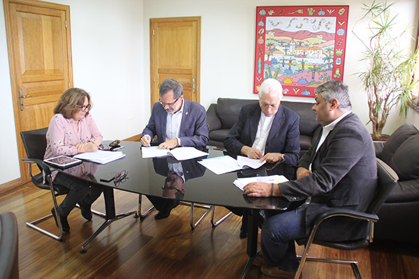 El Cabildo de Fuerteventura apoya la conservación, restauración y difusión de los bienes culturales de titularidad eclesiástica de la Isla, gracias a un convenio suscrito entre el presidente del Cabildo, Marcial Morales, y el vicario general de la Diócesis de Canarias, Hipólito Cabrera. En el acto estuvo presente el consejero de Patrimonio Histórico, Juan Jiménez.