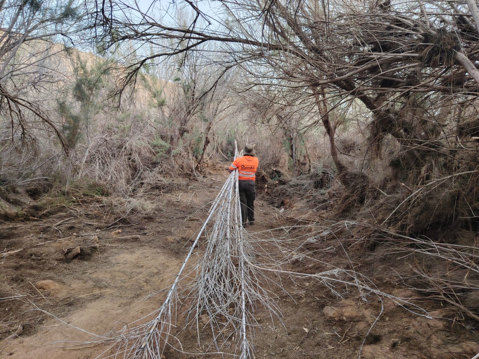 El principal impedimento para alcanzar este objetivo lo constituyen las masas de ramas basales que se han desarrollado en estos pasos de agua y que son una potencial amenaza en caso de lluvias.