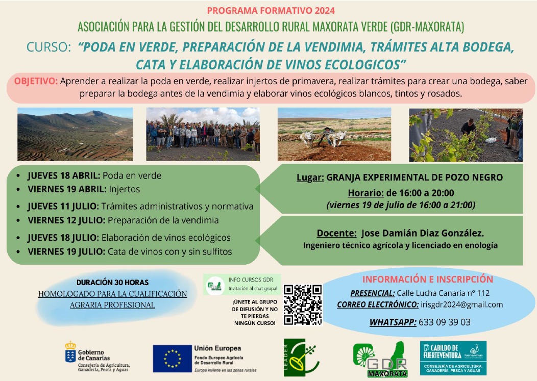 El compromiso del Cabildo de Fuerteventura con el desarrollo del sector primario se refleja una vez más en una serie de jornadas formativas para la profesionalización del sector primario. A través consejería de Agricultura, Ganadería y Pesca, que dirige Matías Peña, y de la mano de GDR Maxorata, se ofrecerán cursos gratuitos diseñados para fortalecer las habilidades y conocimientos de los profesionales agrícolas y ganaderos de la Isla. Estos cursos abordarán una amplia variedad de temas, desde el cultivo de la vid hasta la agricultura regenerativa y la elaboración de vinos ecológicos.