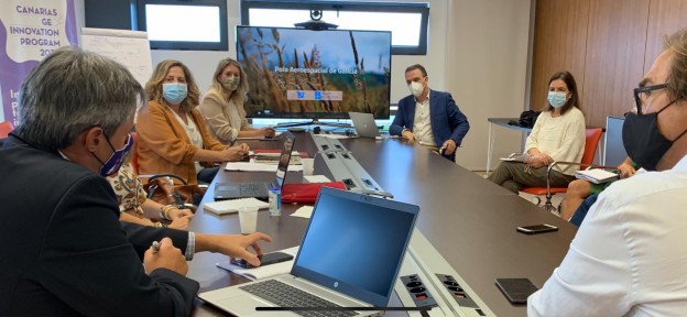 En la reunión se expusieron algunos de los proyectos más emblemáticos que se desarrollan actualmente en Fuerteventura, especialmente aquellos que se enmarcan en el Geo Innovation Program 2030 www.canarias-geo-innovation.program.com, y los orientados al desarrollo de la economía azul y la sostenibildad, entre los cuales destacan soluciones innovadoras para la observación y monitorización del medio aéreo, marítimo y terrestre, combinando diversas tecnologías y fuentes de datos (ópticas, radar, térmicos, etc), conectadas a plataformas híbridas entre satélite y dron y con múltiples aplicaciones en diferentes campos.