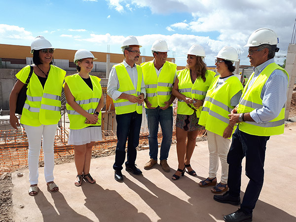 El Complejo Insular de la Discapacidad de Fuerteventura estará funcionando a finales del próximo año, una vez que finalicen las obras de la Piscina Terapéutica y abra sus puertas el nuevo Centro de Día para Personas con Discapacidad. Ambas instalaciones forman parte del acuerdo del II Plan de Infraestructuras Sociosanitarias suscrito por el Gobierno de Canarias y el Cabildo de Fuerteventura. Así se puso de manifiesto hoy, jueves, día 11 de octubre, durante la visita que realizaron a estas obras el presidente del Cabildo de Fuerteventura, Marcial Morales, y la consejera de Empleo, Políticas Sociales y Vivienda del Gobierno de Canarias, Cristina Valido. También asistieron la consejera insular de Bienestar Social, Rosa Delia Rodríguez, el viceconsejero de Políticas Sociales y Vivienda, Francisco Candil, la directora general de Dependencia, Eulalia García, y la consejera insular de Dependencia, Yanira Domínguez, entre otros.