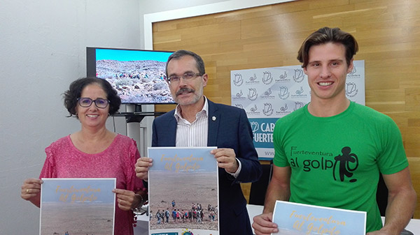 Las y los escolares jóvenes majoreros vuelven a practicar senderismo de la mano de Fuerteventura al golpito, una iniciativa de la Consejería de Juventud del Cabildo majorero que durante este mes llevará a cabo siete rutas interpretadas por toda la isla. Esta mañana, el presidente de la Corporación, Marcial Morales, la consejera Rosa Delia Rodríguez y un representante de Avanfuer, Zebenzuí Umpiérrez, presentaron la cuarta edición de una iniciativa que cada año suma nuevos centros. Este curso participan los IES Corralejo, Santo Tomás de Aquino, Puerto del Rosario, San Diego de Alcalá, Gran Tarajal, Vigán y Jandía, los CEOs Puerto Cabras y Antigua, el CIFP Majada Marcial y el CPEIPS Sagrado Corazón y se beneficiarán de la actividad unos 700 jóvenes.