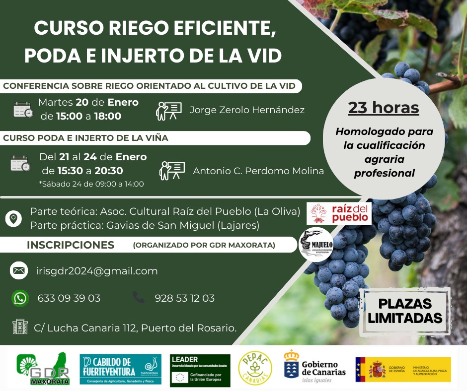 Las plazas son limitadas y las personas interesadas pueden formalizar su inscripción a través de GDR Maxorata, mediante el correo electrónico irisgdr2024@gmail.com o en los teléfonos 633 09 39 03 y 928 53 12 03.