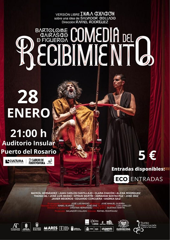 El Auditorio Insular de Fuerteventura acoge este sábado, día 28, a las 21:00 horas, ‘Comedia del Recibimiento’ de Bartolomé Cairasco de Figueroa, en la versión libre de Inma Chacón e idea original de Salvador Collado.