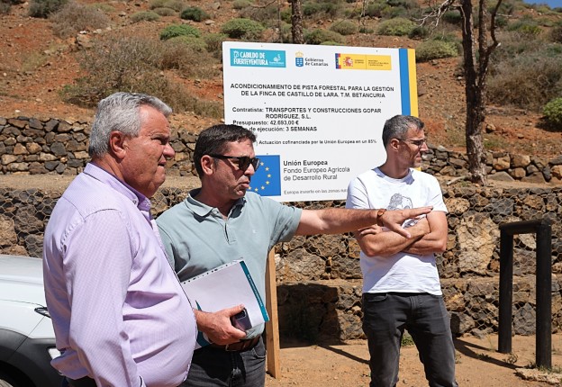 La segunda obra, con una inversión de más de 42 mil euros, ha consistido en el acondicionamiento de la pista forestal para la gestión de la Finca del Castillo de Lara, que cuenta con un pinar de repoblación que representa el único monte catalogado de utilidad pública (MUP) de la isla, donde los ejemplares situados en las vaguadas más abrigadas, llegan a alcanzar los 10 metros de altura.