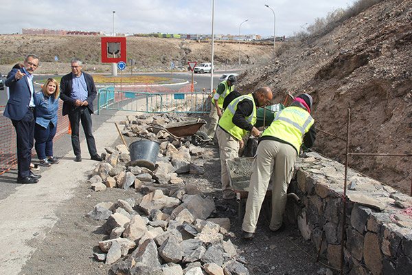 Además, cinco estudiantes-trabajadores peones de construcción y tres canteros artesanales ejecutan un muro de piedra en el lateral de un tramo de carretera cercano al Hospital General de Fuerteventura, en coordinación con operarios del Cabildo. La actuación la lleva a cabo la Consejería de Obras Públicas y Carreteras.