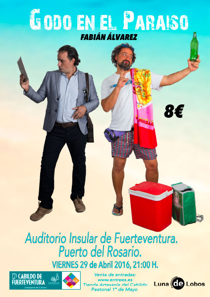 El actor Fabián Álvarez se sube este viernes, 29 de abril, al escenario del Auditorio Insular de Puerto del Rosario, con el monólogo ‘Godo en el Paraíso’. La función tendrá lugar a las 21.00 horas, dentro de las actividades de la Agenda de Cultura del Cabildo de Fuerteventura, que coordina Juan Jiménez.
