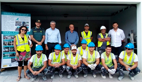 La visita se encuadra dentro del seguimiento que realizan las entidades que promueven y financian este tipo de proyectos. La Casa Cuartel de la Guardia Civil supone la quinta obra que acomete el grupo en la Isla, en una tarea que les permite conseguir simultáneamente competencias profesionales y experiencia laboral.