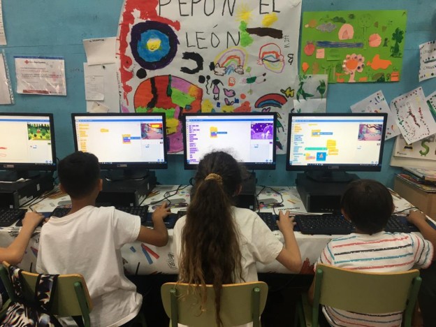 Profesorado y escolares se forman a través de talleres de programación por bloques y uso de herramientas de electrónica creativa. Los talleres se dirigen profesorado, así como a alumnado de cuarto y quinto de primaria, y primero y segundo de ESO.