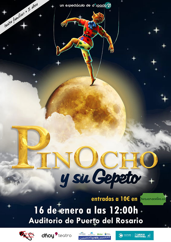 El Auditorio Insular de Fuerteventura acoge este domingo, 16 de enero, a las 12.00 horas, la obra de teatro familiar Pinocho y su Gepeto, dentro de la agenda cultural del Cabildo de Fuerteventura.