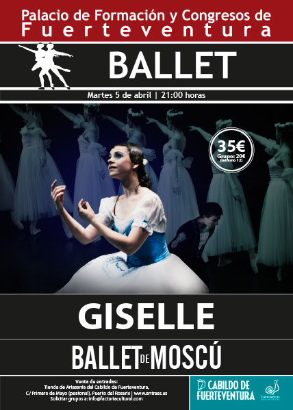El Ballet de Moscú regresa al Palacio de Formación y Congresos de Fuerteventura el martes, 5 de abril, para representar la obra maestra del ballet clásico ‘Giselle’. La función tendrá lugar a las 21.00 horas, dentro de la Agenda de Cultura del Cabildo de Fuerteventura, que coordina Juan Jiménez. Las entradas individuales pueden adquirirse por el precio de 35 euros en la Tienda de Artesanía del Cabildo, en calle Primero de Mayo, o en la página web www.entrees.es.