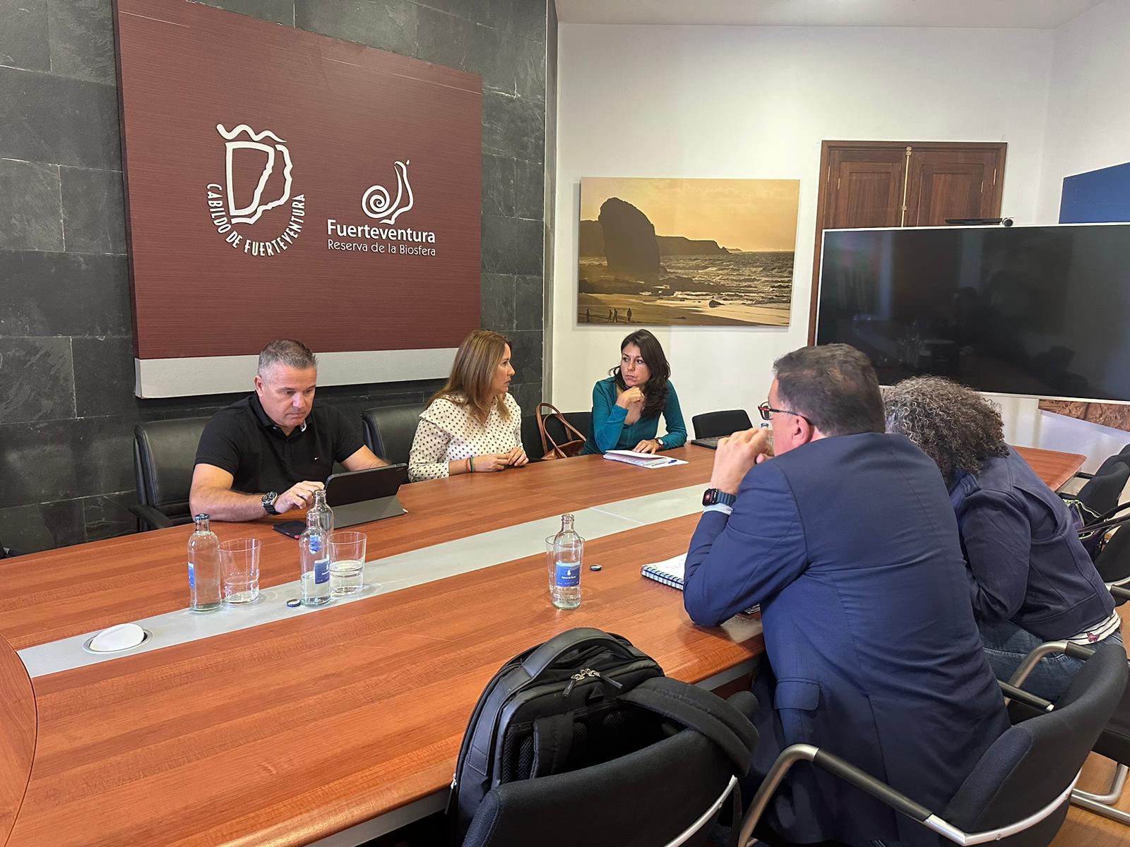 La presidenta del Cabildo de Fuerteventura, Lola García, encabezó hoy una reunión estratégica con la consejera de Seguridad y Emergencias, Paloma Hernández, y el consejero de Política Territorial, Cohesión Territorial y Aguas del Gobierno de Canarias, Manuel Miranda, para abordar la necesidad de contar con planes de emergencia municipal (PEM) redactados y actualizados.