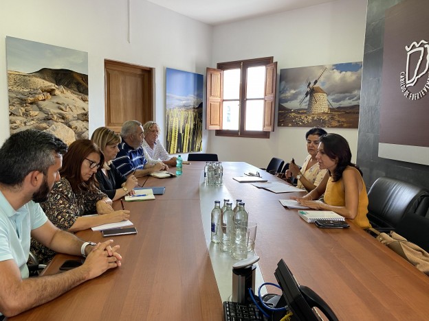 La consejera de Comercio del Cabildo, Paloma Hernández Cerezo, se reunió hoy con representantes de las asociaciones de comerciantes de los distintos municipios de Fuerteventura para recoger sus inquietudes y propuestas, así como para realizar acciones conjuntas para desarrollar proyectos que dinamicen el comercio en toda la isla. También les dio a conocer el Plan Estratégico 2023-2025 que cuenta con diferentes ayudas dentro del mismo, como subvención al sector comercial, promoción, y subvención a proyectos de dinamización.