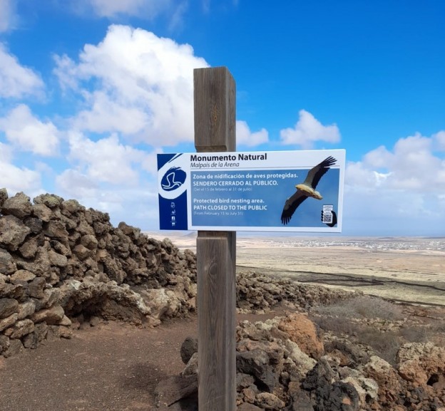 Un total de nueve espacios, entre tramos de senderos y barrancos, han sido cerrados temporalmente para favorecer la reproducción del guirre (Neophron percnopterus majorensis) durante el periodo de cría de aves en la Isla, que comprende del quince de febrero al quince de julio. Este cierre transitorio afecta a las zonas de Caldera de Gairía, Caldera de los Arrabales, Barranco de La Torre y Barranco de los Molinos, espacios que se encuentran cerrados completamente. Por su parte, se inhabilitan algunas tramos y zonas de Morro del Perro, La Muda, la Rosa de Tinojay, el Barranco de La Muley y el Malpaís de la Arena.