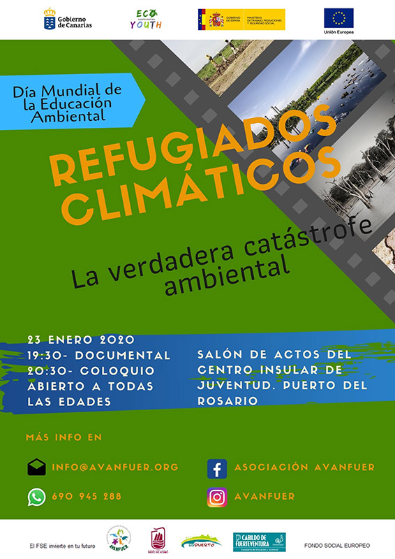 El Cabildo de Fuerteventura, a través de la Consejería de Juventud, colabora con la proyección del documental «Refugiados Climáticos: la verdadera catástrofe ambiental», que tendrá lugar este jueves 23 de enero a las 19.30 horas en el Salón de Actos del Centro Insular de Juventud.