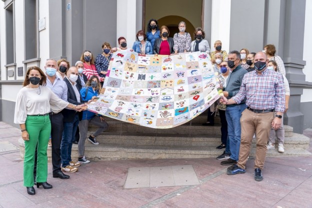 El Cabildo de Fuerteventura ha acogido hoy la presentación de la manta solidaria resultado del proyecto ‘Cosiendo sueños’ en cuya confección han participado 27 mujeres. A iniciativa de la Asociación de Vecinos ‘El Castillejo’ de Tesjuate y bajo la dirección de la profesora de artesanía María del Carmen González Bello, la manta se sorteará el próximo 1 de mayo. El número que coincida con las tres últimas cifras del sorteo de la ONCE de ese día se llevará esta “emotiva” prenda en la que cada una de las autoras ha puesto lo mejor de sí en su confección. La recaudación irá a beneficio de cuatro asociaciones sociales de la isla.