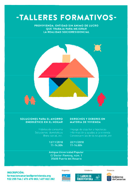 El Cabildo de Fuerteventura colabora en la celebración de un taller sobre soluciones para el ahorro energético en el hogar y otro sobre derechos y deberes en materia de vivienda que se impartirán en el Salón de Actos de la antigua Universidad Popular. El taller sobre soluciones para el ahorro energético en el hogar se celebrará el día 12 de noviembre, de 11.00 horas a 14.00 horas, y el taller sobre derechos y deberes en materia de vivienda se impartirá el día 22 de noviembre, de 11.00 horas a 14.00 horas. La Corporación insular colabora con estos talleres a través de la Consejería de Bienestar Social, que dirige Rosa Delia Rodríguez.