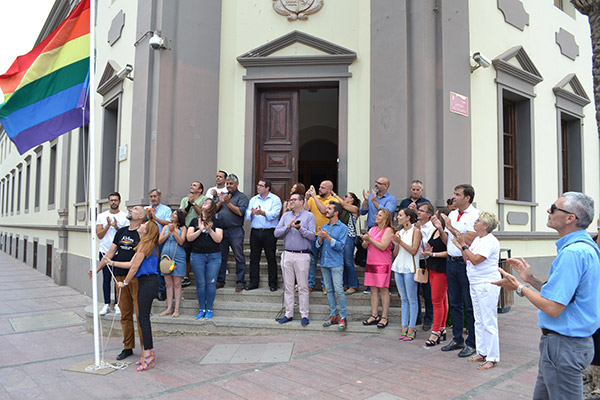 Lola García participó en el izado de la bandera arcoíris con motivo del ‘Día Internacional del Orgullo LGTBI’, junto representantes de las instituciones majoreras y del colectivo ‘Altihay’.
