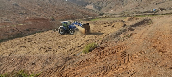 Entre otras actuaciones habituales en gavias, los tractores agrícolas del Servicio de Obras y Maquinaria limpian de maleza estas obras hidráulicas tradicionales y reconstruye sus taludes de contención para retener el agua de escorrentía y canalizarlo hacia la siguiente gavia escalonada. También, como en esta ocasión en Tesejerague, procede a prepararlas para el cultivo.