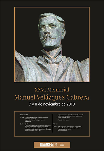 El programa, organizado a través de la Consejería de Cultura, que dirige Juan Jiménez, contempla la ofrenda floral al busto de Manuel Velázquez Cabrera este miércoles, 7 de noviembre, a las 19.30 horas. Previamente se impartirá una conferencia en la iglesia de Tiscamanita a cargo del doctor en Historia Contemporánea por la UNED y exprofesor titular de la ULPGC Agustín Millares Cantero, en torno a la figura del cacique Leandro Fajardo Cabrera, que pasó de republicano a conservador pasando por liberal. Cerrará el acto un concierto a cargo de la orquesta de pequeños virtuosos La Cuerda de Oro, de Marilina Dobreva.