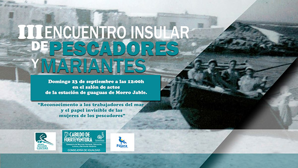 El Salón de Actos de la Estación de Guaguas de Morro Jable acoge este domingo, día 23 de septiembre, el III Encuentro de Pescadores y Mariantes, un evento organizado por el Grupo de Acción Costera de Fuerteventura (GAC), que cuenta con el respaldo del Cabildo de Fuerteventura, a través de la Consejería de Cultura que dirige Juan Jiménez, y la colaboración del Ayuntamiento de Pájara, la Cofradía de Pescadores de Morro Jable y los centros de la tercera edad del municipio. El acto pretende hacer un reconocimiento a los trabajadores del mar y poner en valor el papel invisible que desempeñan las mujeres de los pescadores, las grandes olvidadas.