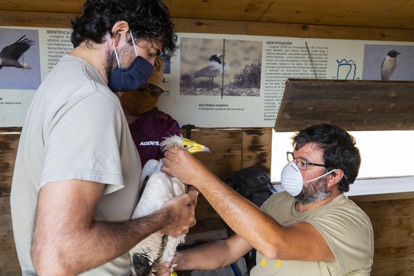 Antes de su liberación, el personal técnico de seguimiento de la Estación Biológica de Doñana-CSIC coloca al animal un emisor GPS/GSM, que permitirá realizar un seguimiento de sus movimientos y conocer su comportamiento tras ser liberado, además de permitir una intervención rápida y eficaz en caso de que sea necesario.