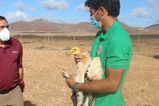 El Cabildo de Fuerteventura colabora con el Proyecto LIFE Egyptian Vulture de seguimiento de la población del guirre en Canarias, contando con la implicación de técnicos de la Estación Biológica de Doñana-CSIC, Cabildo de Fuerteventura, Gobierno de Canarias y GESPLAN.