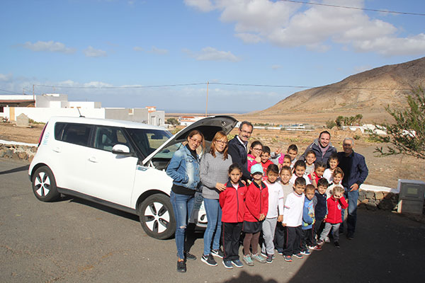 El Cabildo de Fuerteventura llevó esta semana uno de los coches eléctricos de la flota de la institución pública al CEO Tindaya, en el municipio de La Oliva, para mostrar a escolares de este centro educativo el funcionamiento de estos vehículos así como los beneficios para reducir emisiones de CO2 a la atmósfera dentro de las acciones que lleva a cabo la Corporación insular para que Fuerteventura sea una isla sostenible.