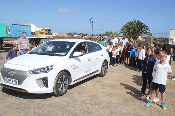 Escolares de primero y segundo curso de Primaria en el CEIP Lajares conocieron hoy, lunes, día 19 de marzo, el funcionamiento del coche eléctrico y la importancia del uso de energías limpias dentro de un programa que el Cabildo de Fuerteventura lleva a cabo en los centros educativos en colaboración con Radio ECCA para dar a conocer entre la población más joven los beneficios de las energías fotovoltaica y eólica.